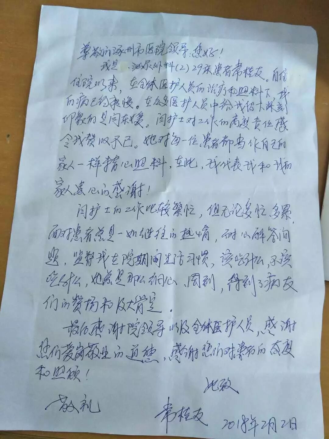 最后感謝我院所有的領(lǐng)導(dǎo)和醫(yī)護(hù)人員,感謝你們愛(ài)崗敬業(yè)的精神,感謝你們對(duì)患者的態(tài)度和照顧。