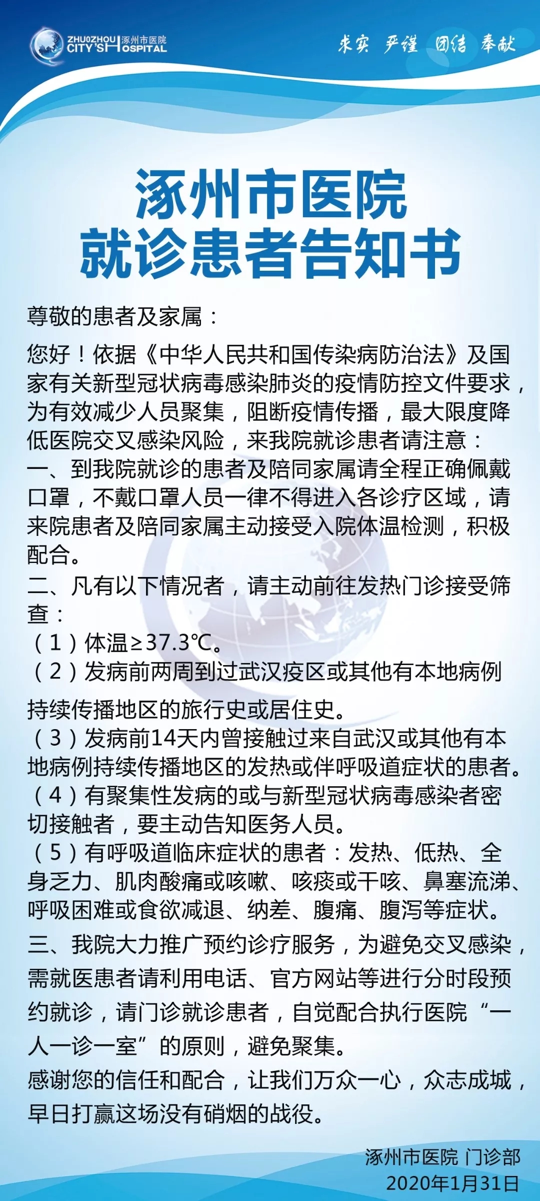 涿州市醫(yī)院就診患者告知書