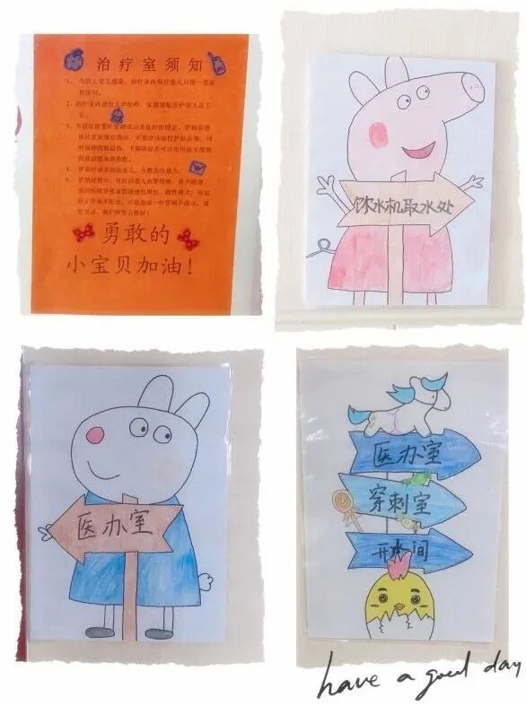針對夜間門診、新入院患兒家屬對病區(qū)常用地點不熟悉,科室制作了指示牌。兒科穿刺室經(jīng)常遇到焦躁的家屬,在門口張貼穿刺室須知,可以緩解家屬緊張情緒,取得配合。