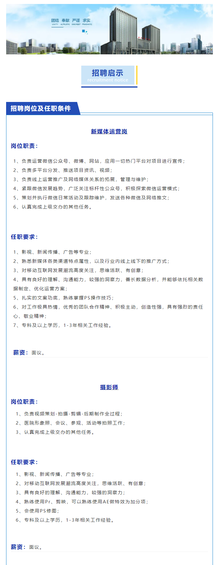 【最新招聘】涿州市醫(yī)院新媒體運(yùn)營、攝影師..