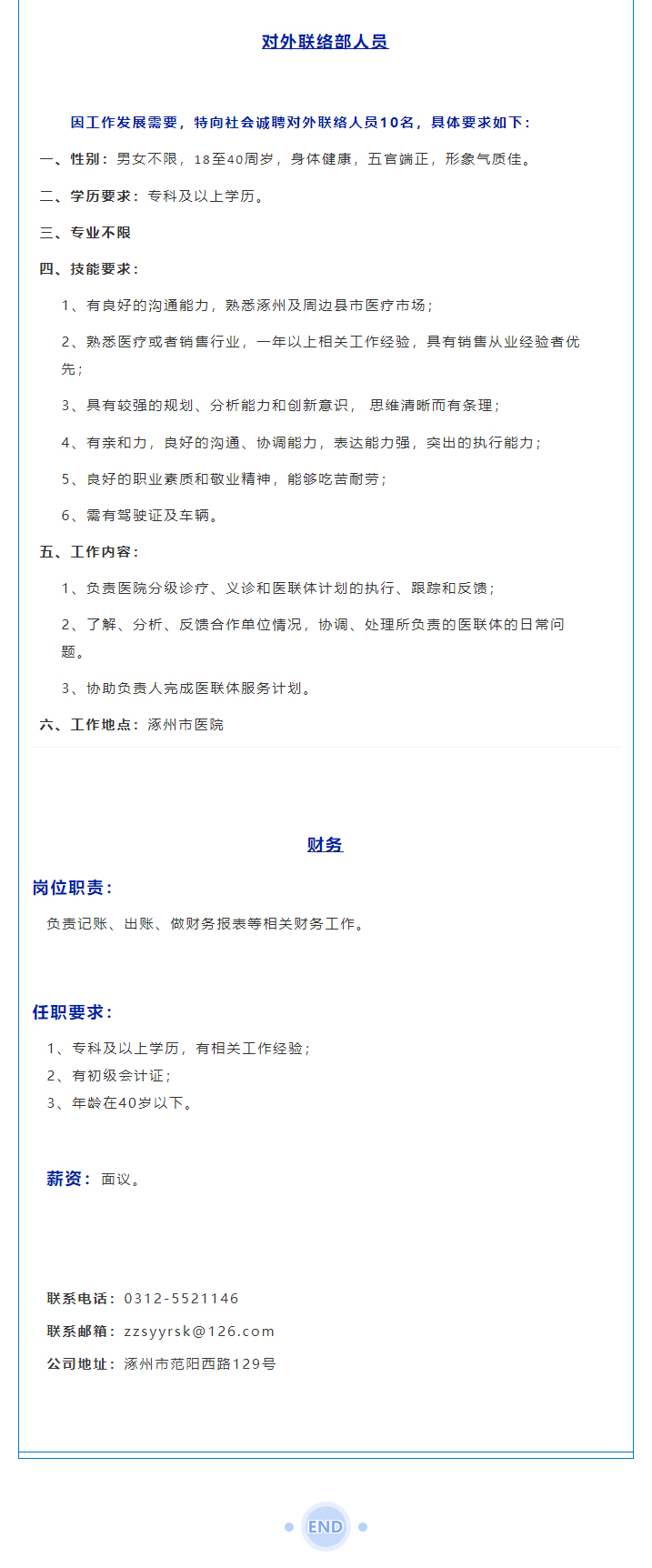 【最新招聘】涿州市醫(yī)院新媒體運(yùn)營、攝影師、對外聯(lián)絡(luò)部人員、財務(wù)招聘啟示
