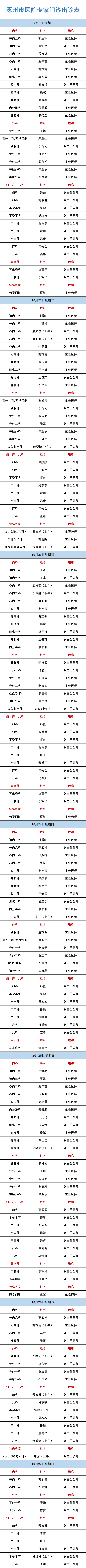 【出診信息】10月14日-10月20日